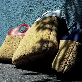 For Spring/Summer 2011 she has used synthetic sponges, air filters, knitted raffia and natural or colored cork. For Spring / Summer 2011 she has used synthetic sponges, air filters, knitted or natural colored raffia and cork.